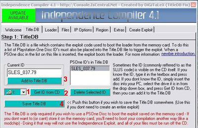 die Anmerkung am Ende dieser Anleitung beachten! Hier jetzt die Anleitung von Northlightning: So nachdem ich mit gut 48 Stunden damit rumgeprügelt habe, bin ich nun endlich in der Lage ohne Chip, ohne gebrannte CDs und ohne SWAP Tool sämtliche Exploits (mal abgesehen vom HDLoader) auf MemoryCard oder Platte zu hiefen. Gleich vorne ab: Mit dieser Anleitung könnt ihr nicht ohne die HD Advance CD auf die Festplatte zugreifen, diese Anelitung ist nur für alle anderen Exploits. So könnt ihr also auch ohne Swap, Chip etc. Savegames tauschen, Filme vom PC streamen etc. Was braucht ihr? - Playstation - eingebaute Festplatte - Cross Kabel - Freie Netzwerkkarte am PC - Memory Card - HD Advance / HD Loader ORIGINAL-CD!!! - empfohlen: WinHiip 1.76 (um PS2OS und ExecFTP auf der PS2-Festplatte zu installieren) Was ich nicht erkläre: Ich erkläre nicht wie man einen FTP Clienten bedient, ebenso erkläre ich nicht wie wo welches Kabel hinein gehört. Ausgangssituation: Das Problem war ja bisher, mit dieser Ausrüstung überhaupt Zugriff auf die MemoryCard zu bekommen, wenn man weder Chip, noch ein Swap Set hat. Also Step by Step: Wir brauchen dieses File, das ist der FTP Server: EXECFTP69 Diese Datei auf die Ps2 Festplatte spielen (HD Advance Name: FTP Server) Zusätzlich brauchen wir dieses File hier: (Ps2 OS - Der Launcher) PS2OS 0.3 Diese Datei auf die Ps2 Festplatte spielen (HD Advance Name: Ps2 OS) PS2 ausschalten, mit PC verkabeln (mit dem Crossover Kabel). Windows Einstellungen: Start->Systemsteuerung->Netzwerkverbindungen Ihr müsst wissen in welcher Netzwerkkarte ihr das Crossover Kabel reingesteckt habt. Auf die Netzwerkkarte Rechtsklick->Eigenschaften ![]() TCP/IP auswählen und Eigenschaften drücken. Folgende Werte eintragen und mit ok alle Fenster schließen ![]() Sodale. Zugriff! PS2 starten mit HD Advance 3.0 und den Eintrag FTP Server auswählen. Ihr seht, alles ok. Nun verbindet ihr euch via FTP Client (wie zb Flash FXP) zum Host 192.168.1.10 Wechselt ins Verzeichniss mc/0/ und seht schon eure Savegames. Glückwunsch, ihr befindet euch auf der MemoryCard. Anmerkung von Tommy1986: Die IP muss anstelle von 192.168.1.10.... 192.168.0.10 lauten.... dann hats bei mir geklappt ACHTUNG! Ich hatte einige Probleme mit dem FTP Client und musste öfters manuell das Kommando "LIST" eingeben bis der Verzeichnissbaum richtig dargestellt wurde. Mühsam aber funzt. Manuelle Kommandos könnt ihr im Flash FXP über den Menüpunkt "COMMANDS -> RAW COMMAND" eingeben. Also wo waren wir... achja: Glückwunsch, ihr befindet euch auf der MemoryCard. Zum Testen spielt ihr nun mal die 3 Dateien, welche in diesem RAR File enthalten sind, direkt in den Ordner mc/0/ der Memory Card: Test-Files Bitte schaut ob die Dateien wirklich komplett hochgeladen wurden (LIST!), grade billig Memorycards machen wohl oft Probleme. Dann einfach nochmal hochladen bis es komplett geuppt ist! Soweit so gut. Playstation aus. Ja toll, wie starte ich die Dinger denn nun ohne Swap und Co? Playstation an -> HD Advance 3.0 -> Ps2 OS auswählen, kurz warten. mit R1 die memorycard anwählen -> nach unten scrollen bis die ELF Datei die ihr auf die Memorycard geladen habt markiert ist -> X drücken -> Schwupp! Ihr habt soeben euren ersten Exploit gestartet. (Dieser Exploit ist nur zum testen, ihr könnt ihn danach wieder mit der FTP Routine löschen und euch gescheite raufspielen). Kein Chip, Kein Swap, kein Nix, einfach nur wie immer booten für alle Festplatten User. ERGÄNZUNG: Installation eines aktuellen HD Loader Exploits mit dieser Methode (thx to Tommy1986, Iceman04, nat_1) Die bis hier beschriebene Methode funktioniert prima, um ELF-Files aller Art aufzurufen und zu nutzen, einen aktuellen HD Loader kann man damit aber (aus bisher ungeklärten Gründen) nicht betreiben. Die Loader-ELF lässt sich zwar starten, aber jedes Spiel stürzt schon beim Start ab. Aber es gibt eine Möglichkeit, wie man auch einen HD Loader Exploit damit auf die MemoryCard installieren kann. Geht vor wie folgt: Benötigt wird: - alles, was weiter oben schon genannt wurde - eine Original-PS1-CD (Trigger Disc für den Exploit) - dieses Datei-Archiv mit den benötigten Exploit-Daten (DOWNLOAD) - Independence Compiler 4.1 (ist HIER mit dabei) Geht zunächst vor, wie in der Anleitung von Northlightning beschrieben um ExecFTP und PS2OS auf die Platte zu installieren und stellt dann eine Netzwerkverbindung her. Kopiert dann den gesamten Ordner "BEDATA-SYSTEM" (auch den Ordner, nicht nur die Dateien!) auf die Memorycard. Jetzt fehlt euch noch die TITLE.DB-Datei, mit der der Exploit gestartet wird. Diese muss auch noch auf die Memorycard ins Verzeichnis BEDATA-SYSTEM. Um diese Datei zu erstellen muss folgendermassen vorgegangen werden: Startet den Independence Compiler 4.1. Klickt im Hauptmenü den Ordner "TITLE.DB" an (siehe Bild) Zuerst die PS1 Disk ins CD-Rom Laufwerk des PCs einlegen unter (1) das Laufwerk mit der CD auswählen, dann auf (2) "Get ID from CD" klicken. Daraufhin sollte das Laufwerk kurz anspringen und in (3) erscheint die Disk-ID (z.B. SLES_031.42). Jetzt auf (4) "Add to Title.DB" klicken und danach auf (5) "Save Title.DB". Der Speicherort ist frei wählbar, hauptsache ihr findet die Datei wieder. (Nachtrag: Es können hier auch mehrere PS1-Disk-ID's eingefügt werden, somit ist jede eingefügte Disk als Trigger Disk tauglich) Jetzt ist die TITLE.DB erstellt und muss nun nur noch übers Netzwerk auf die Memorycard in den BEDATA-SYSTEM Ordner kopiert werden. Der Exploit ist nun manuell installiert worden. Enthalten in diesem Paket ist der HD Loader 0.8a (HDL08A.ELF). Es gibt jedoch immer wieder neue Versionen (aktuell: HD Loader 0.8b). Also besorgt euch bei Interesse einfach einen neuen HD Loader und kopiert diesen auf die Memorycard, die HDL08A.ELF könnt ihr dann weglassen, da ihr nicht mehrere Loader auf der Memorycard braucht. Jetzt ist schon fast alles geschafft. Legt eure PS1-Disc ins Laufwerk der PS2, die Memorycard mit dem Exploit sollt