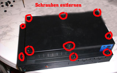 Lösung. Dazu wird benötigt: - Das Exploit-Set (DOWNLOAD) - PS2OS 0.3 - empfohlen: WinHiip 1.76 (um PS2OS auf der PS2-Festplatte zu installieren) - eine SlideCard (HIER KEINE SWAPMAGIC-SOFTWARE NÖTIG!). *Die Slidecard könnt ihr enweder selber basteln (umständlich) oder bei Ebay für 1 Euro bestellen Der Ablauf ist recht einfach: Installiert zunächst PS2OS auf der PS2-Festplatte (geht am einfachsten am PC mit WinHiip 1.76). Dann erstellt euch eine Exploit CD (Anleitung siehe "C.2 Wie erstelle ich mir einen Exploit mit SwapMagic und SlideCard?") Wenn ihr eure Exploit CD erfolgreich erstellt habt legt eure Original HD Loader / HD Advance Disc ein und startet die PS2. Im Loader-Menü wählt PS2OS aus. Sobald PS2OS geladen wurde ist es Zeit, mit der SlideCard das Laufwerk der PS2 zu öffnen, die original-Loader-CD herauszunehmen und die Exploit-Install-CD einzulegen. Dann mit Hilfe der SlideCard das Laufwerk wieder schliessen. Im Hauptmenü von PS2OS die erste Option wählen um in den FileManager zu gelangen. Aufs DVD/CD Laufwerk der PS2 wechseln (mit R1 kommt man ins Laufwerksmenü). Die Datei EXPINST.ELF starten. Jetzt sollte die Installation des Exploits beginnen. Danach die Konsole ausschalten. PS1-Trigger Disc einlegen, und neu starten. Der blaue Startbildschirm von LauchELF sollte erscheinen. Weitere Infos zur Einstellung und Konfiguration des Exploits findet ihr unter C.2 und C.5 Nachtrag: Es geht auch ohne Slidecard... Für alle, die sich das Geld für die Slidecard sparen wollen geht es auch ohne. Dazu müsst ihr einfach die PS2 vorsichtig aufschrauben (Die Schrauben befinden sich an der unterseite unter den Gummifüssen und unter den anderen kleinen schwarzen Abdeckungen). ![]() Beim Abnehmen des Deckels (obere Gestellhälfte der Konsole) besonders aufpassen, um das Kabel zum EIN/AUS/RESET Schalter nicht zu beschädigen oder abzureissen! Jetzt solltet ihr von oben in die Konsole schauen können. ![]() Jetzt noch den Deckel des Laufwerks abschrauben und schon könnt ihr CDs wechseln, wie ihr wollt. Wenn die Konsole in Betrieb ist muss der Deckel des Laufwerks immer drauf sein, zum CD wechseln könnt ihr ihn aber abnehmen, CD austauschen und wieder draufpacken. Immer darauf achten, dass sich der Deckel nicht wieder löst, wenn eine CD im Laufwerk ist, also entweder ne Schraube reinmachen, was drauflegen oder mit der Hand den Deckel fixieren. Spoiler: